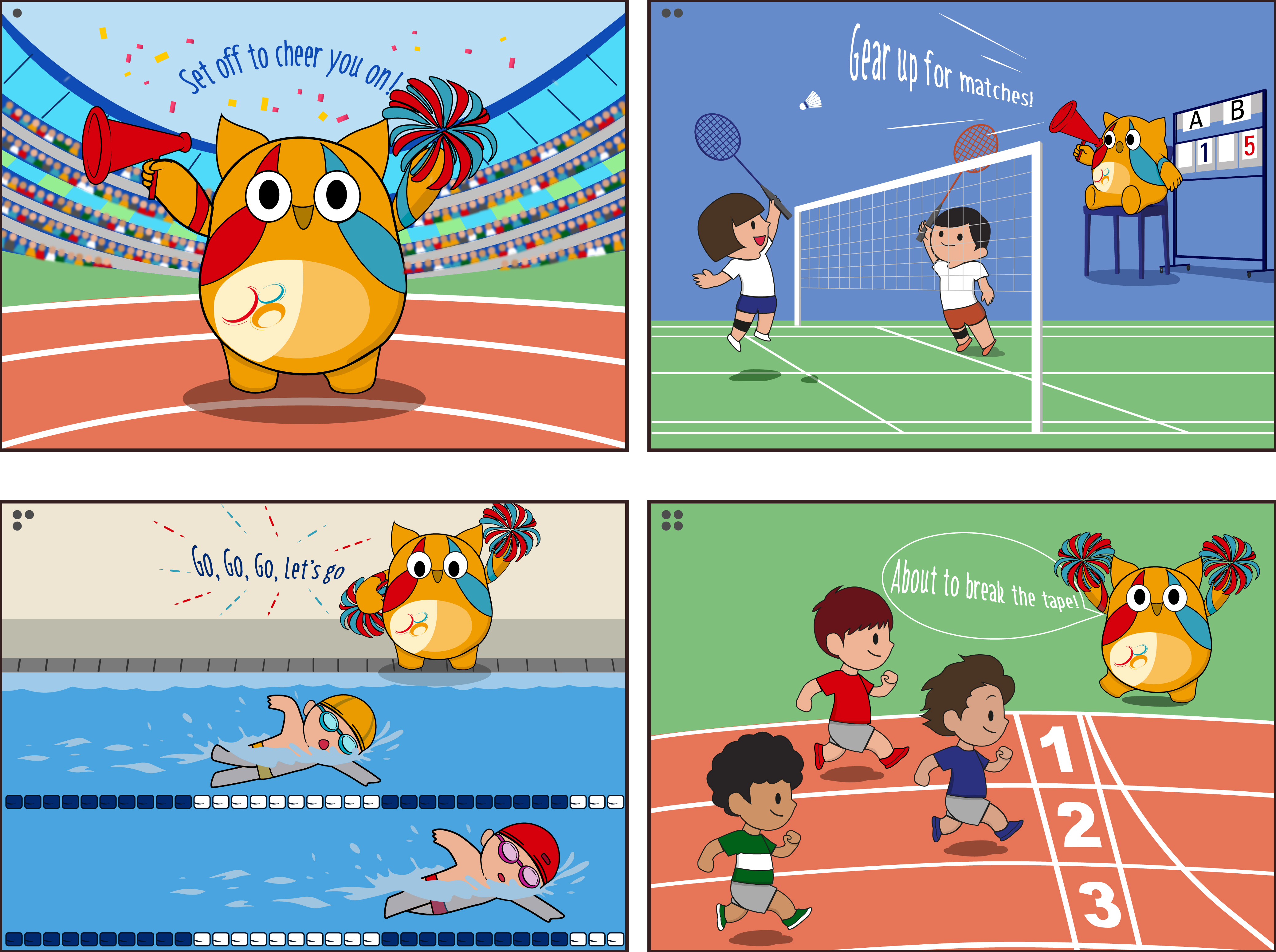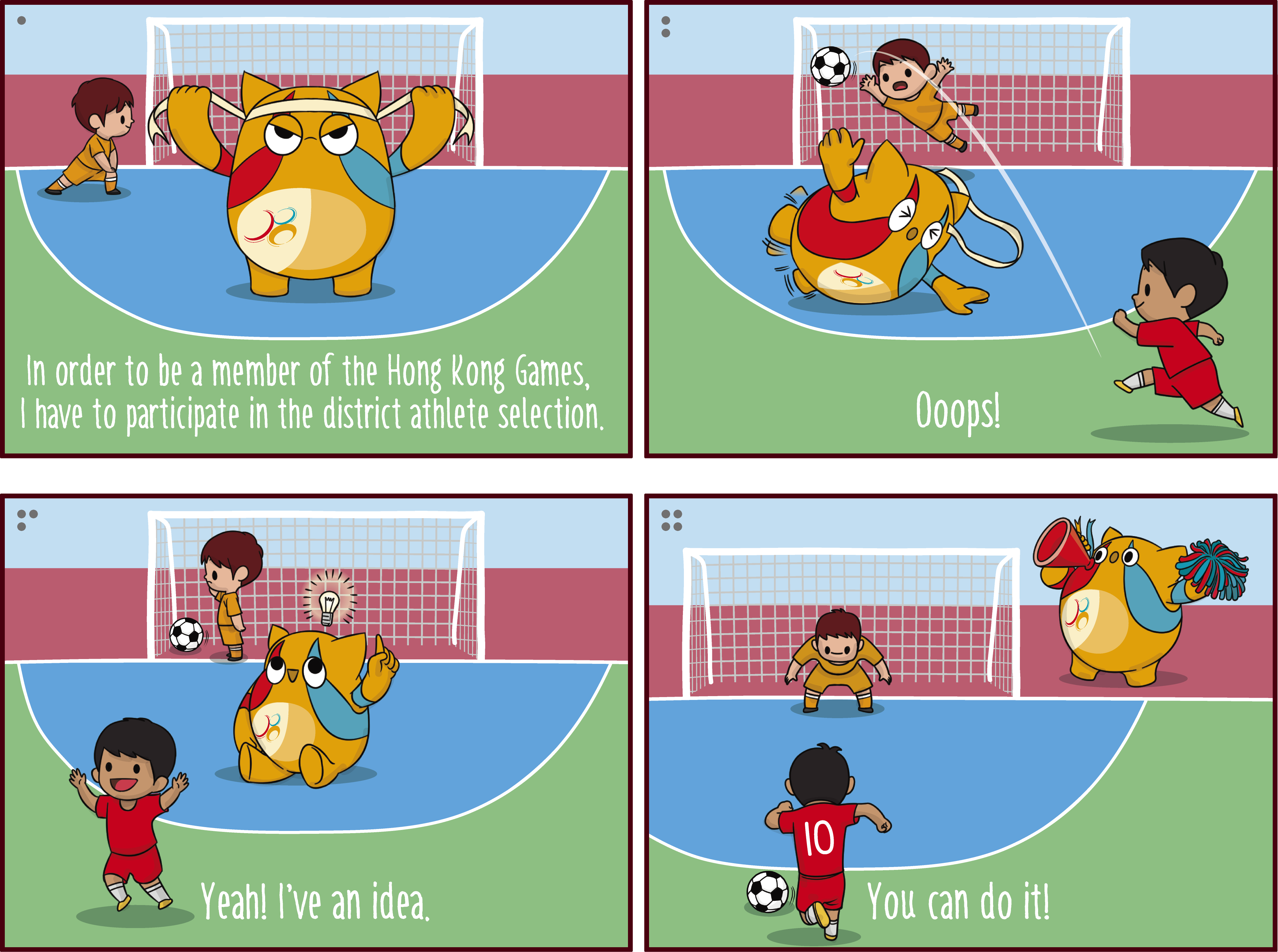 The energetic Cheering Larry always supports the athletes with cheer megaphone and cheerleader pom poms, adding momentum to HKG.